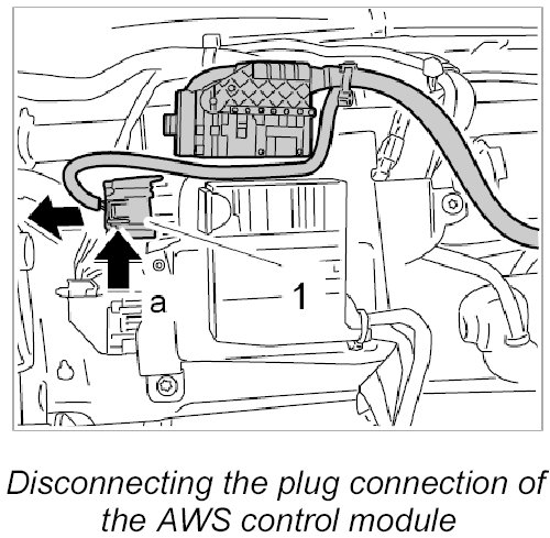 1. Push electric connector -1- onto AWS control module until it is felt to engage.
