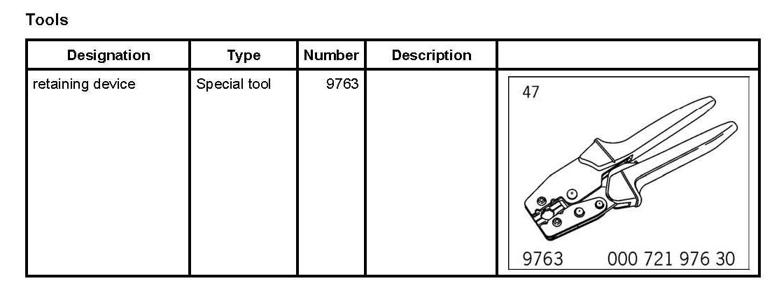 When tightening the brake lines -1- on the brake master cylinder (25 Nm (19 ftlb)., use special tool retaining device 9763 to counter at the crimping point of the hose (close to the rigid line) -3-. This prevents the hoses from twisting away from the new type of brake lines -1- that are used (modified material at the cap screws/legal requirement).