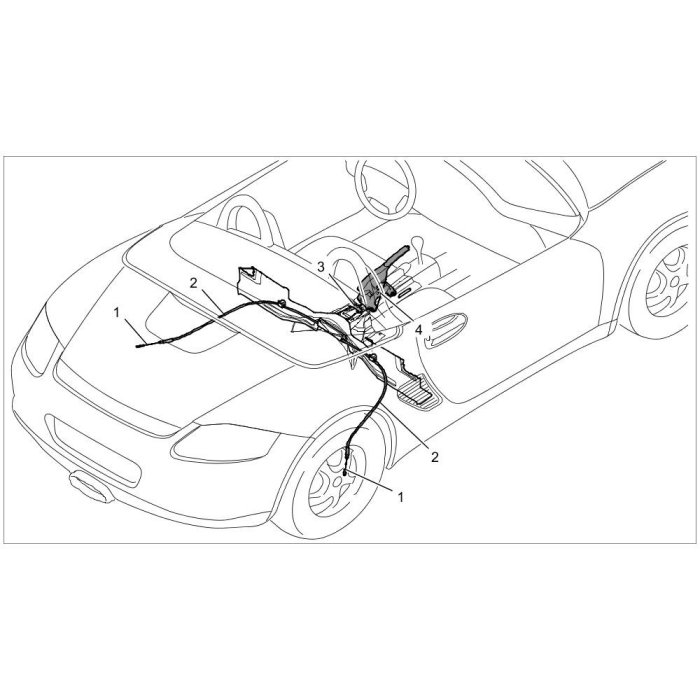 1.1. Insert brake cables (at the underbody) into the housing or into the guide tubes (as of 2009 model) and press them in as far as they will go.