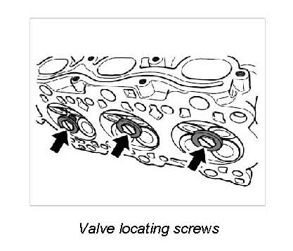 2. Screw in the three valve locating screws -arrows- in the spark plug threads.