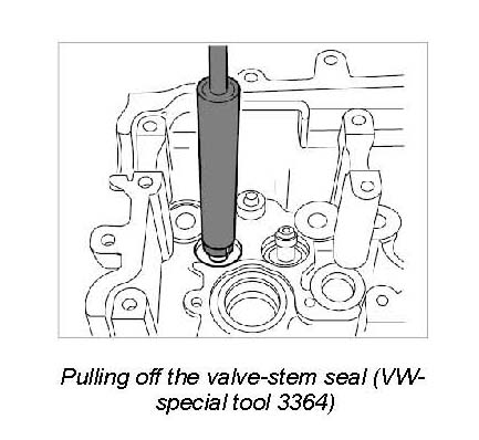 6. Using the VW special tool puller 3364 pull off the valve-stem seal.
