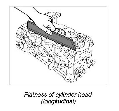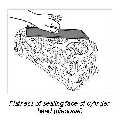 3. Check combustion chamber sealing face of the cylinder head for distortion (flatness) using a straight-edge and feeler gauge.
