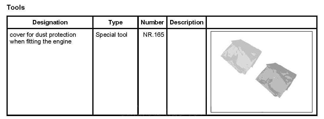 -> Use the cover for dust protection when fitting the engine NR.165 on the engine assembly support.