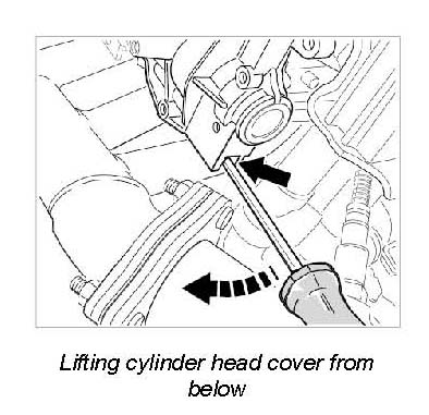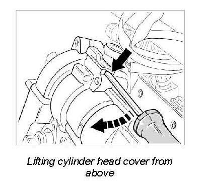Damage when levering off the cylinder head cover.