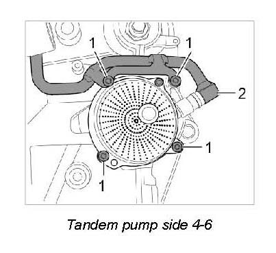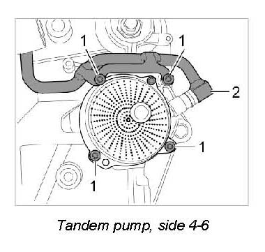- A tandem pump is installed on side 4-6 instead of the oil suction pump. Pull off the vacuum line on the pump -2-. Replace O-rings and micro-self-locking screws -1-.