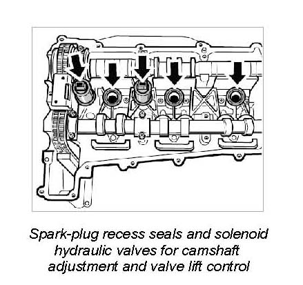 1. Insert three new seals for the spark-plug recesses.