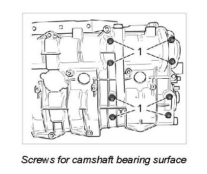 3. Coated screws on the camshaft bearing surfaces -1- must be replaced.