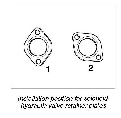 10. Push new retainer plates (with integrated seal) onto solenoid hydraulic valves. Position holder and tighten with two Torx screws (M6 x 20).