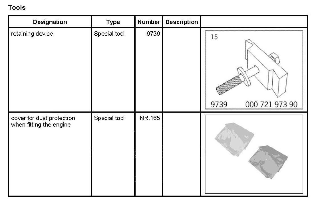 -> Use the cover for dust protection when fitting the engine NR.165 on the engine assembly support.