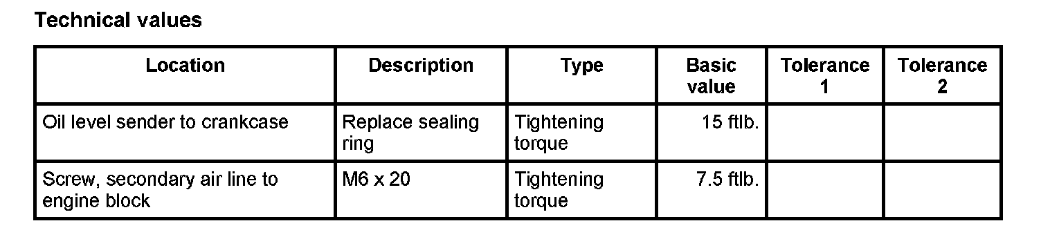 1. Insert oil-level sender together with a new sealing ring and tighten. -> Tightening torque: 15 ftlb.