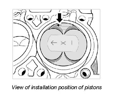 62. Remove all carbon deposits and other residues on all six pistons with a brass brush, which will make the engraved markings -Arrow- visible. In addition, number and mark the pistons in installation position before removal.