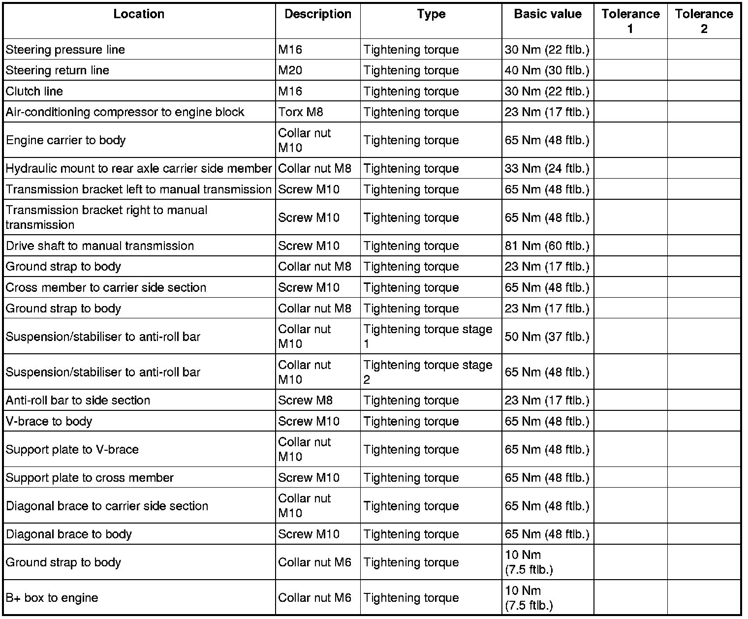 - Take care to maintain access to the screws for the diagonal struts in the vicinity of the rear jacking points.