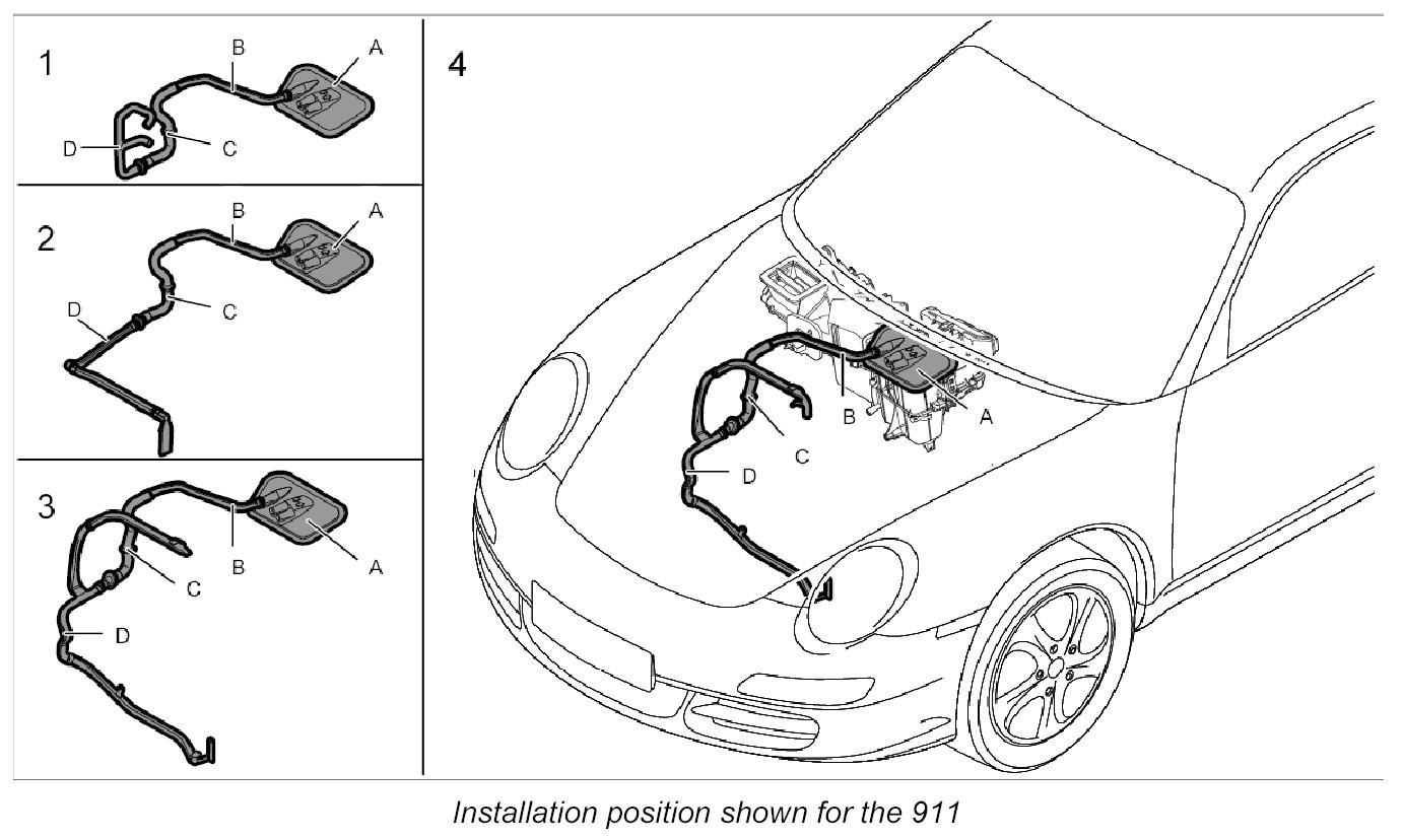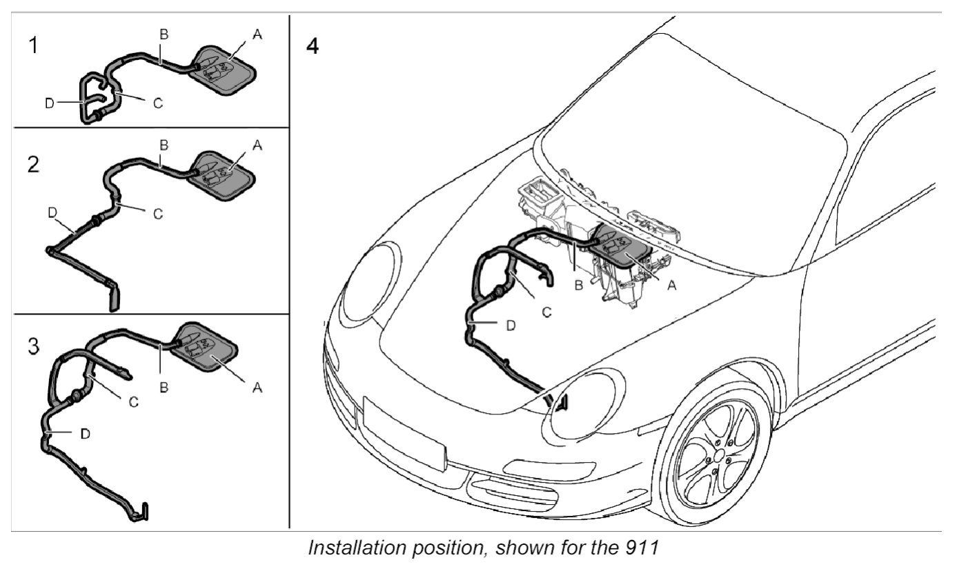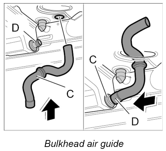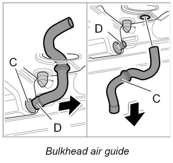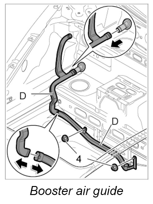 4. Route booster air guide -D- around the body and insert into the upper air guide.