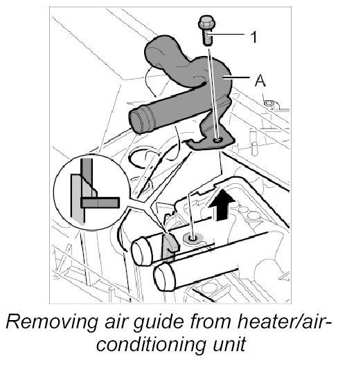 2. Unscrew fastening screw -1- for the air guide -A- and pull the air guide out of the heater/air-conditioning unit.