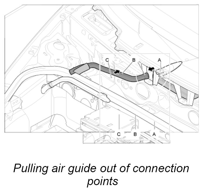 5. Pull air guide -B- out of air guide -A- and then out of air guide -C-.