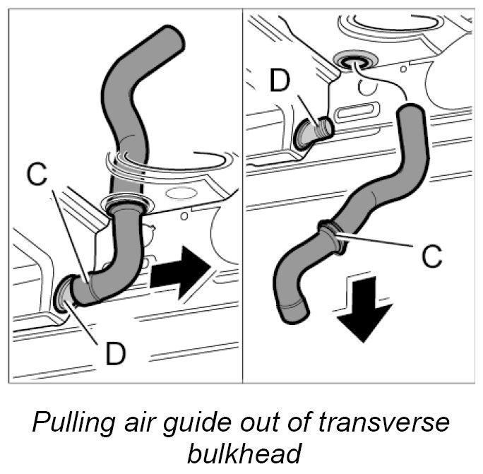 1. Pull air guide -C- out of connection -D-.