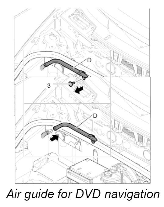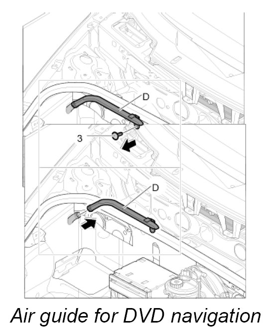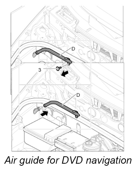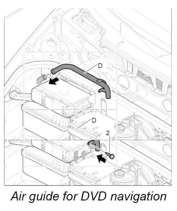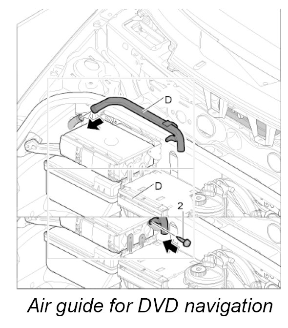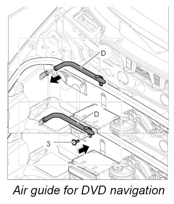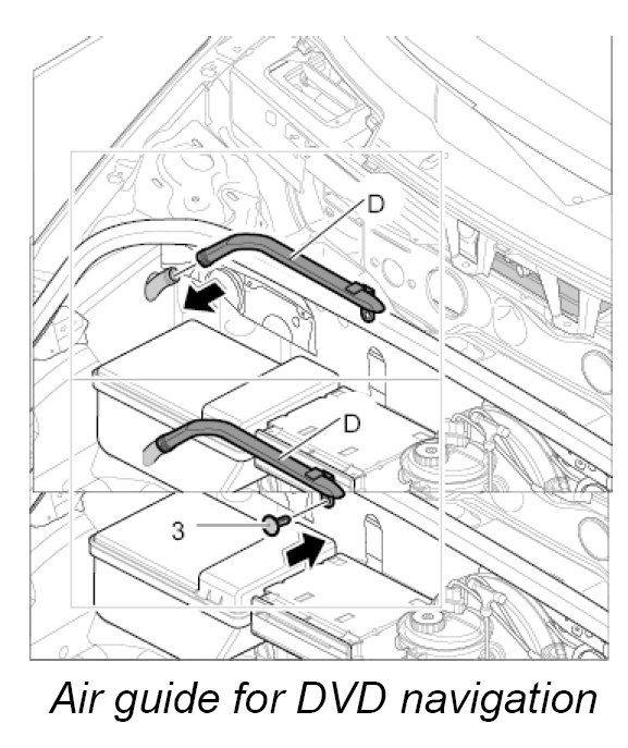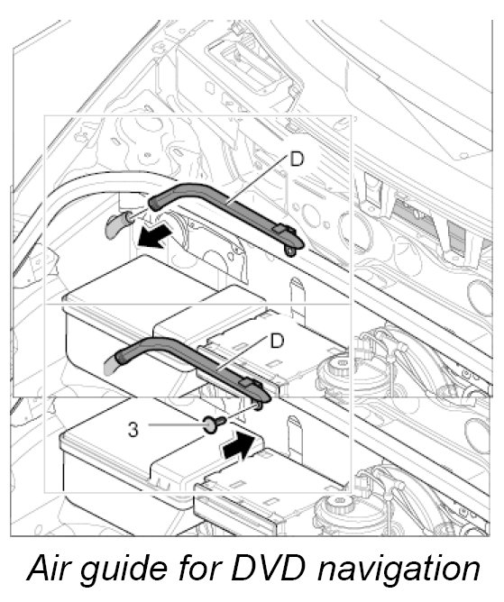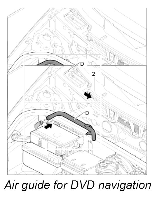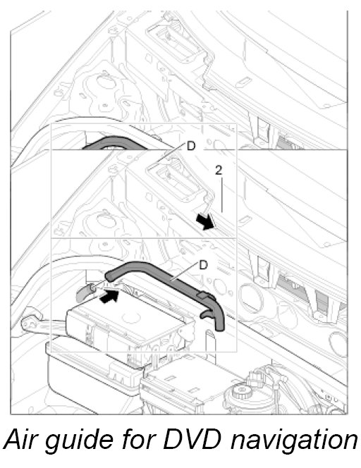 Air guide D, luggage compartment air guide for DVD navigation with carbon canister and with CD autochanger