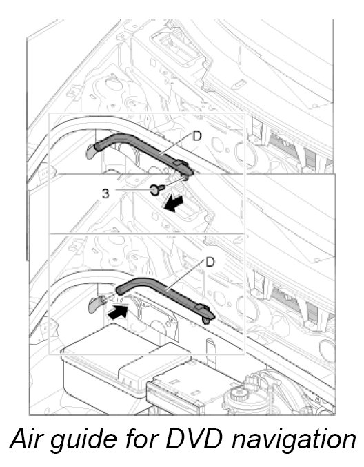 12. Screw down air guide -D- to the CD autochanger support with the fastening screw -2-.