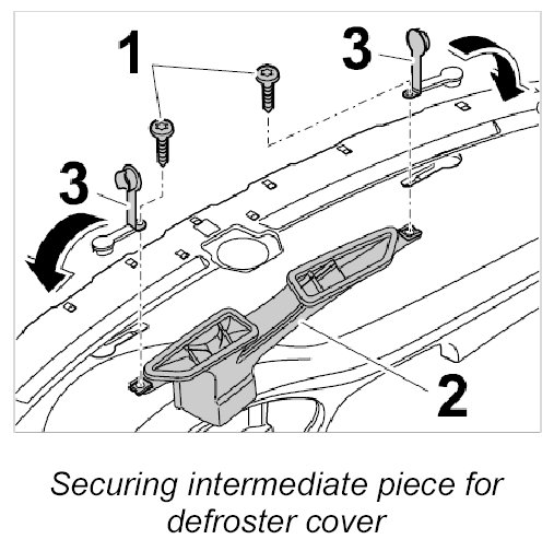 1. Pull defrost air guide -2- up out of the heater/air-conditioning unit.