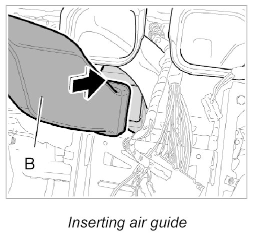 1. Insert the air guide -B- into the heating/air-conditioning unit and check that it is secure.