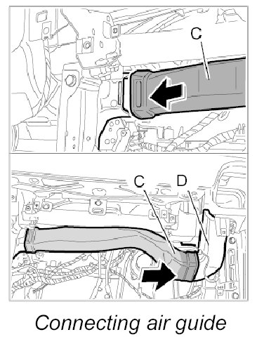 2. Connect air guide -C- at the heater/air-conditioning unit and at the air guide -D-.