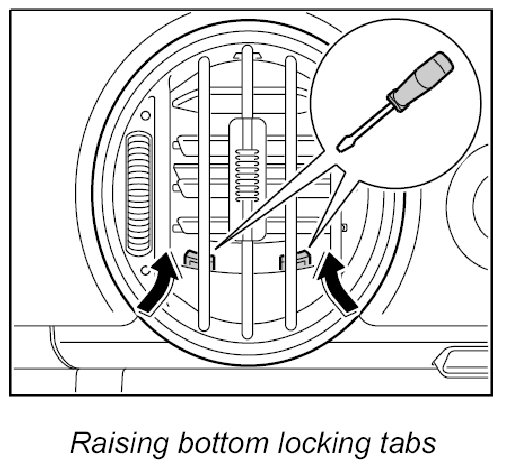 The two bottom locking tabs can be raised using a small screwdriver.