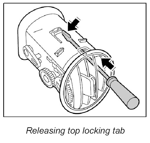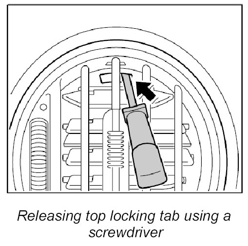 The top locking tab must be levered downwards using a thin screwdriver.