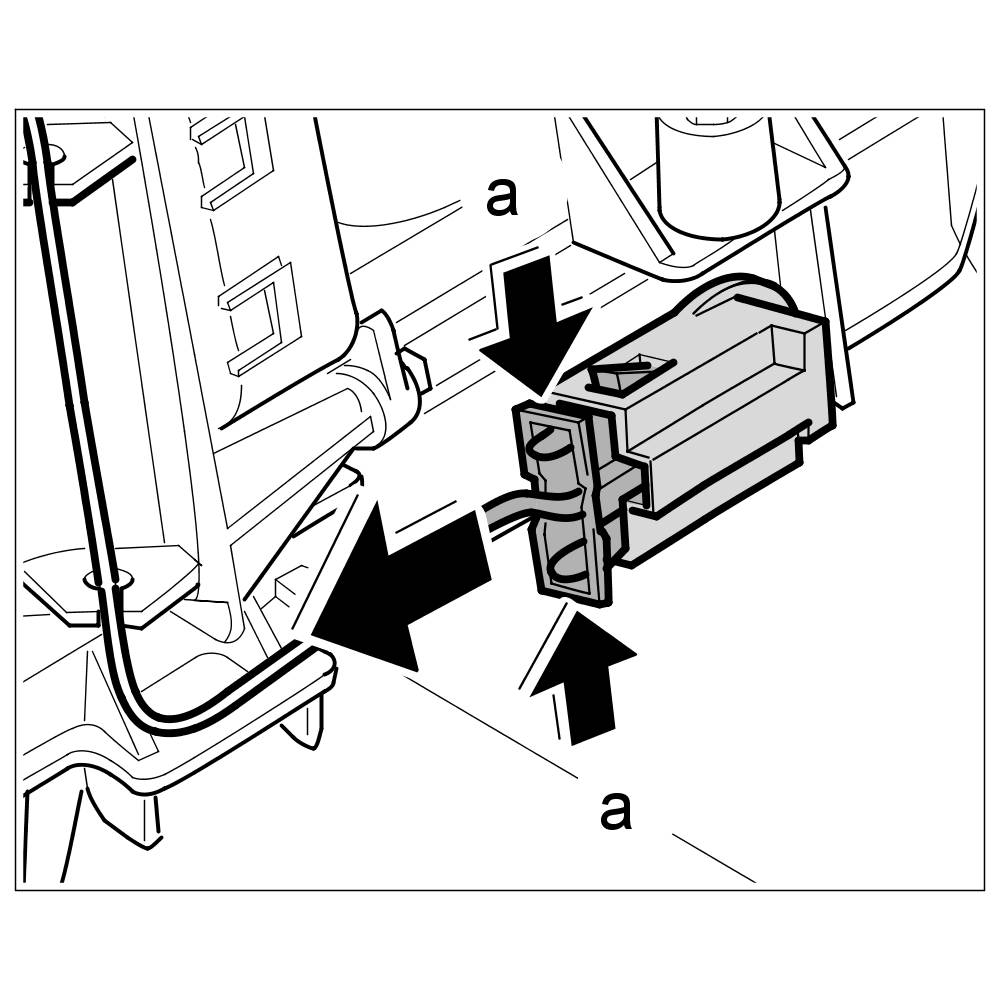 2. From the driver's side, reach around to the "driver's footwell" air vent to release and disconnect the electrical connector -a-.