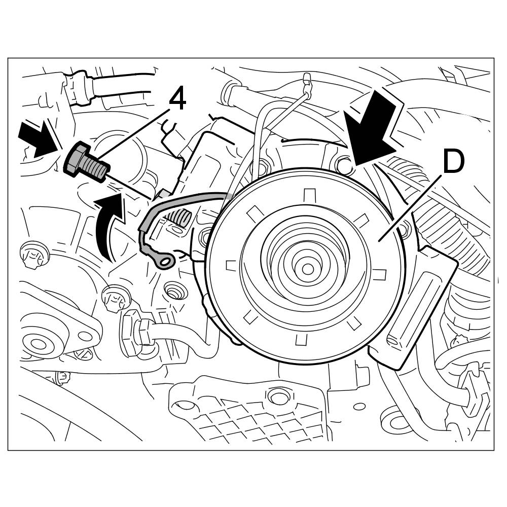 5. Position compressor on engine again and screw down the fastening screws: