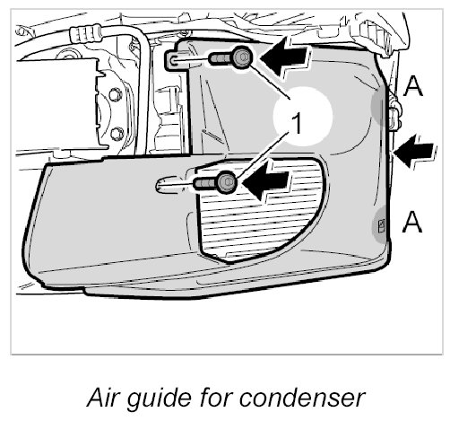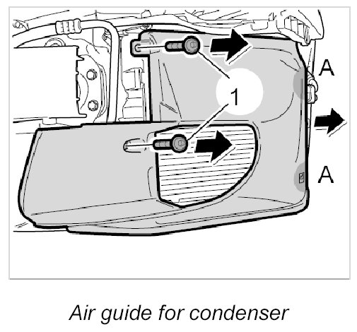 2. Pull the air guide forward and disengage it at the condenser -A-.
