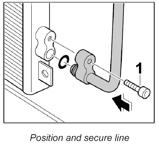 1. Carefully push the lines into the condensers and screw tight with the fastening screws. Tightening torque: 14 Nm (10.5 ftlb.)