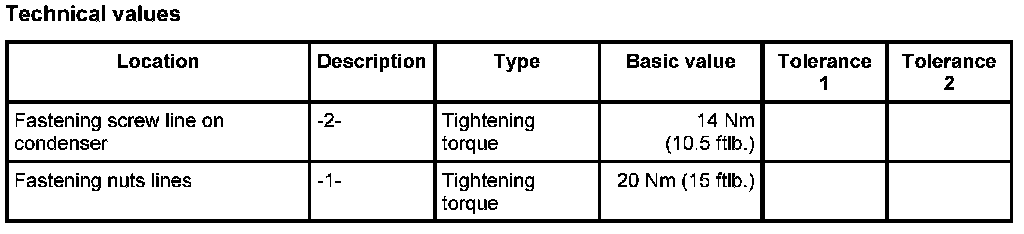 INFORMATION: When loosening or tightening the M8 refrigerant lines on the condenser, always counter with a 21-mm open-ended wrench.
