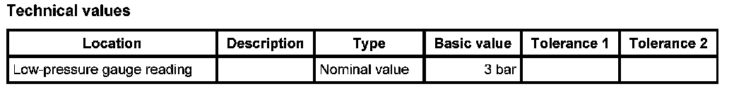 - Do not allow low-pressure gauge to exceed - Nominal value: 3 bar.