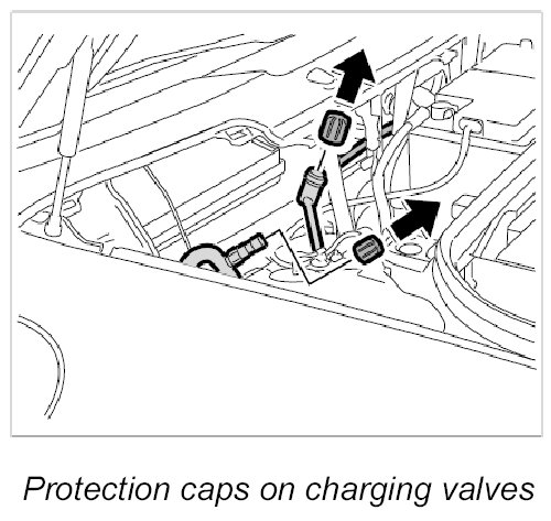- After filling the air-conditioning system, the valve of the high-pressure and low-pressure connection must be checked using a leak detector.