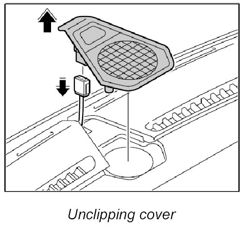1. Lift cover on dashboard using plastic spatula and unclip.