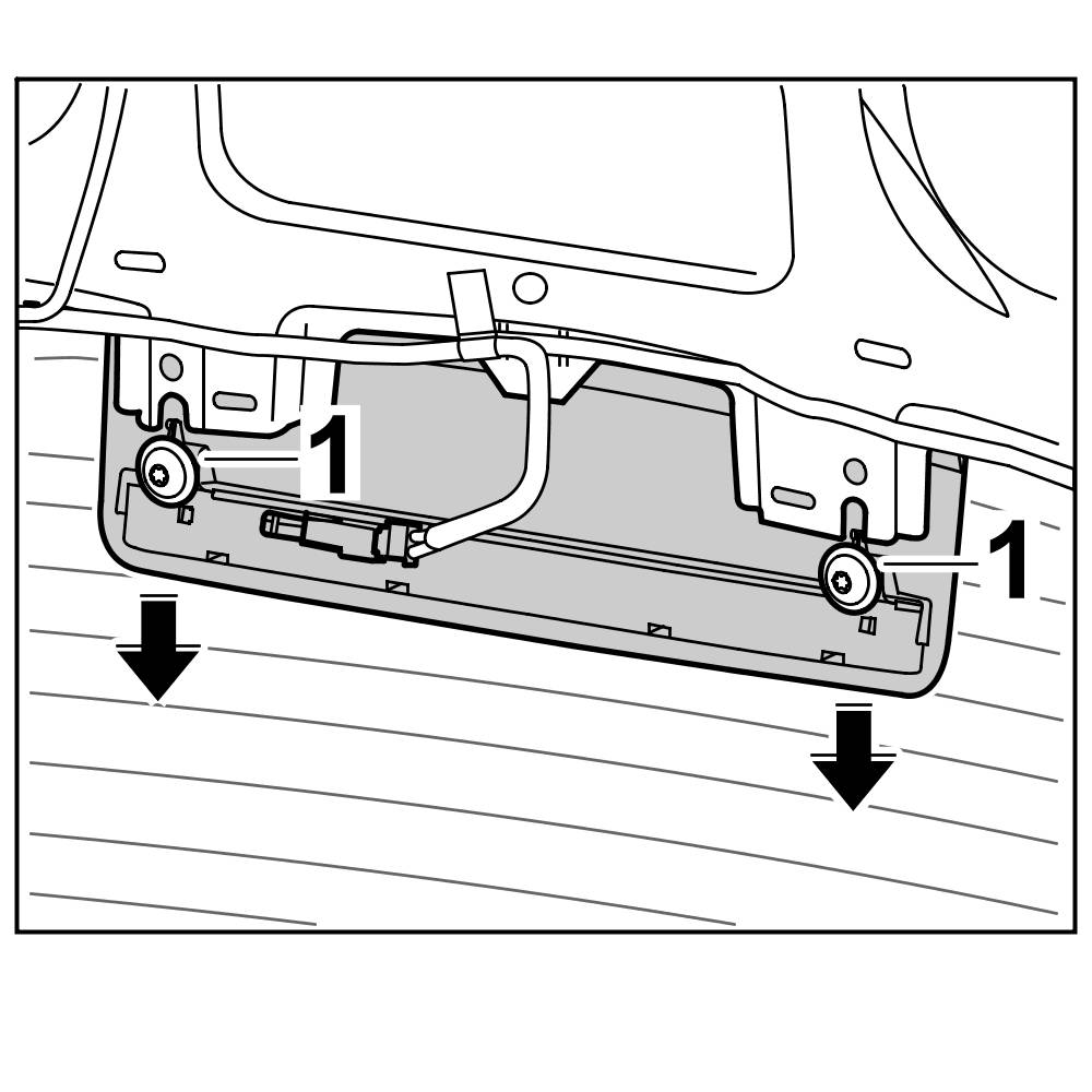 2. Position auxiliary brake light in rear lid and screw down with the two fastening screws -1-.=> Tightening torque: 1.5 Nm (1 ftlb.)
