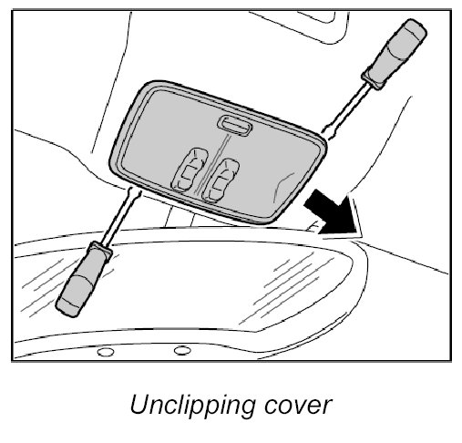 1. Carefully unclip cover for the interior light at top and bottom using a small screwdriver.