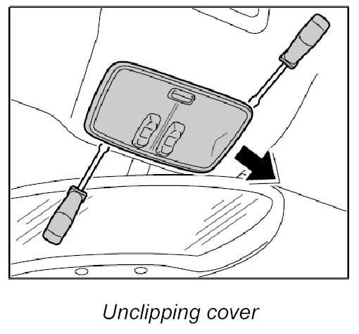 1. Carefully unclip cover for the interior light top and bottom using a small screwdriver.