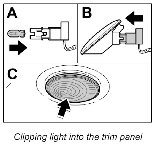 2. Insert bulb holder into the light and clip light into the trim panel.