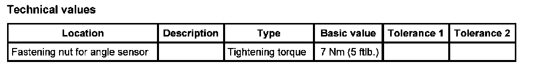 INFORMATION: If the angle sensor has been replaced, the front end control unit must be calibrated; afterwards the headlight setting must be checked and adjusted if necessary.