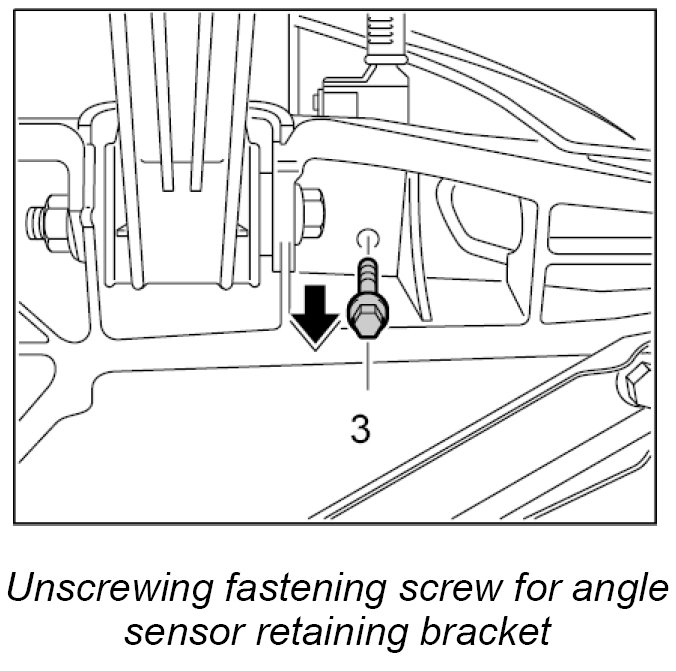 3. Unscrew fastening screw -3- for angle sensor retaining bracket on side member from below.
