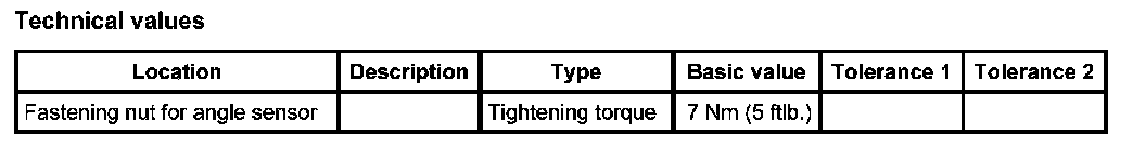 INFORMATION: If the angle sensor has been replaced, the front end control unit must be calibrated; afterwards the headlight setting must be checked and adjusted if necessary.