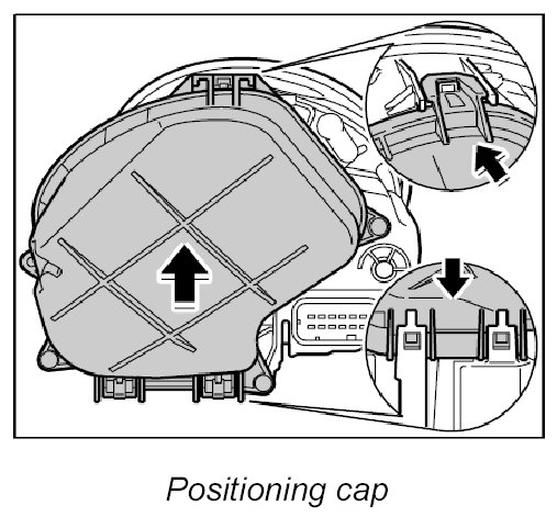 1. Position cap on main headlight and press into place, making sure that the cap engages once at the top and twice at the bottom.