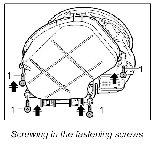 2. Screw in four fastening screws -1- for the cap.