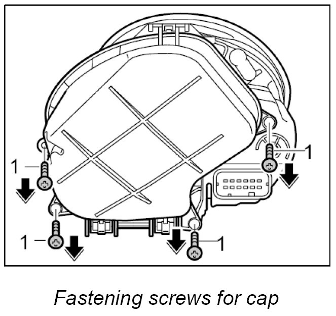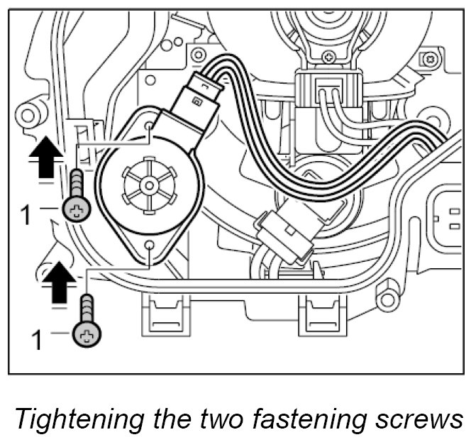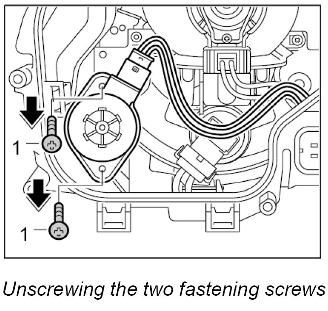 1. Unscrew the two fastening screws -1- for the servo motor.