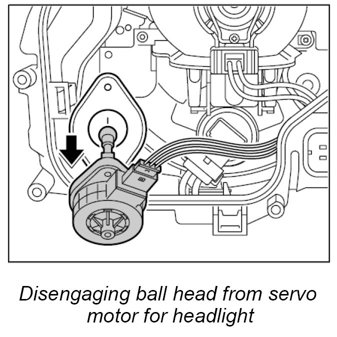 2. Engage servo motor in the actuator for the main headlight and push servo motor upwards.
