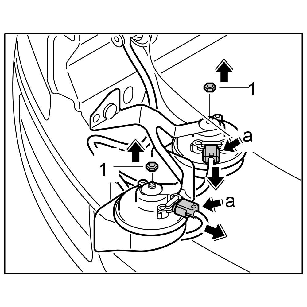 3. Unlock the electric connector -a- and disconnect from the horns.