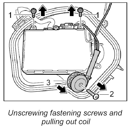 1. Unscrew the fastening screw -2- for the coil and pull the coil -3- out of the cap.