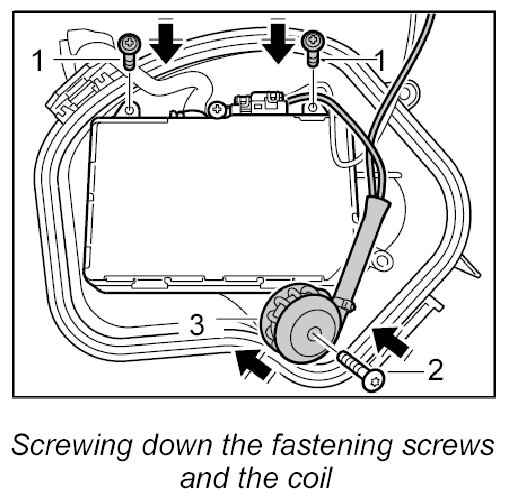 3. Push on the coil and screw it down with the fastening screw.