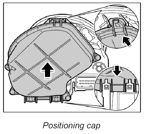 1. Position cap on main headlight and press into place, making sure that the cap engages once at the top and twice at the bottom.